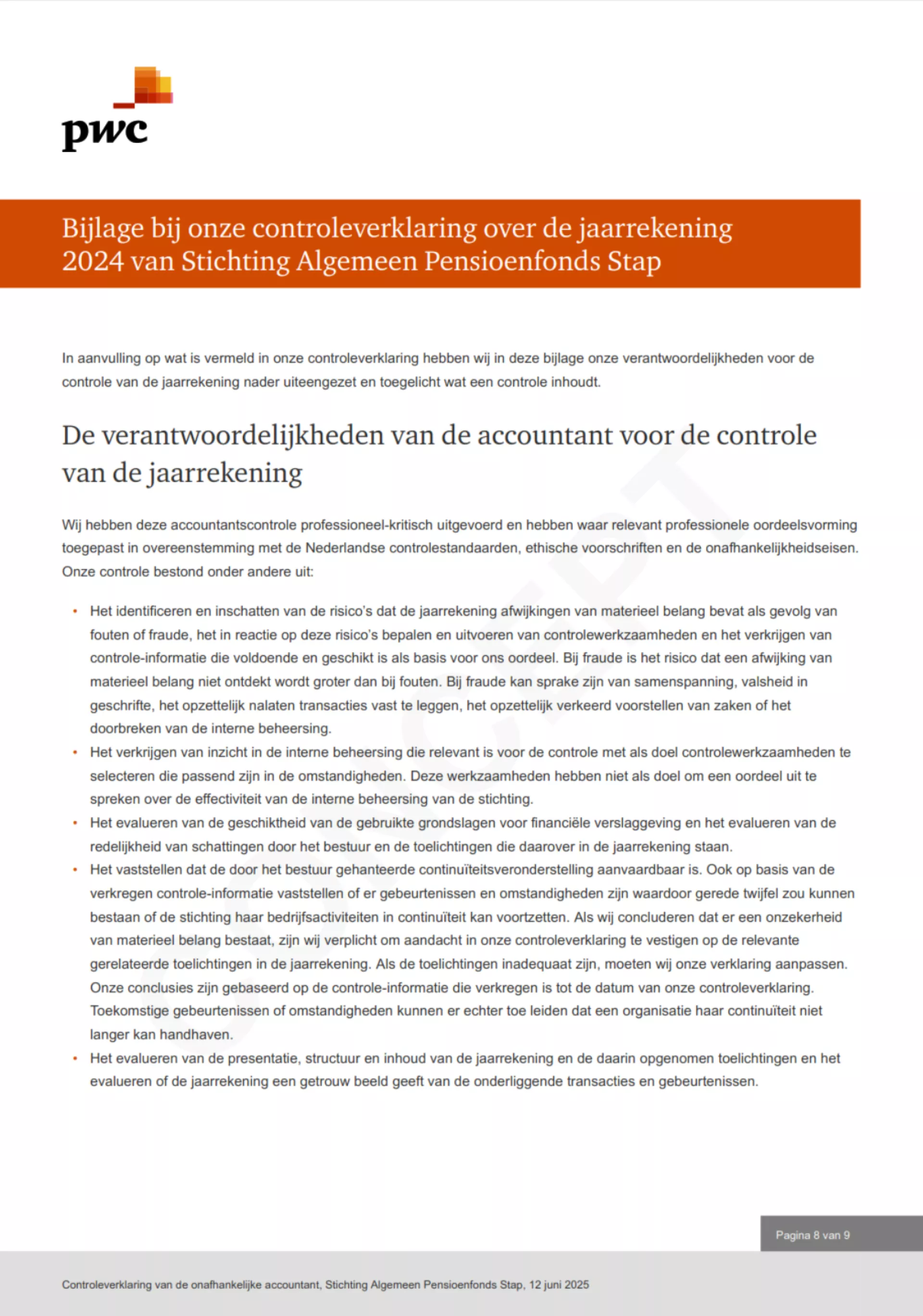 Door Stichting Algemeen Pensioenfonds Stap - Pensioenkring Ballast Nedam te Den Haag is aan Triple A – Risk Finance Certification B.V. de opdracht verleend tot het afgeven van een actuariële verklaring als bedoeld in de Pensioenwet over het boekjaar 2023.