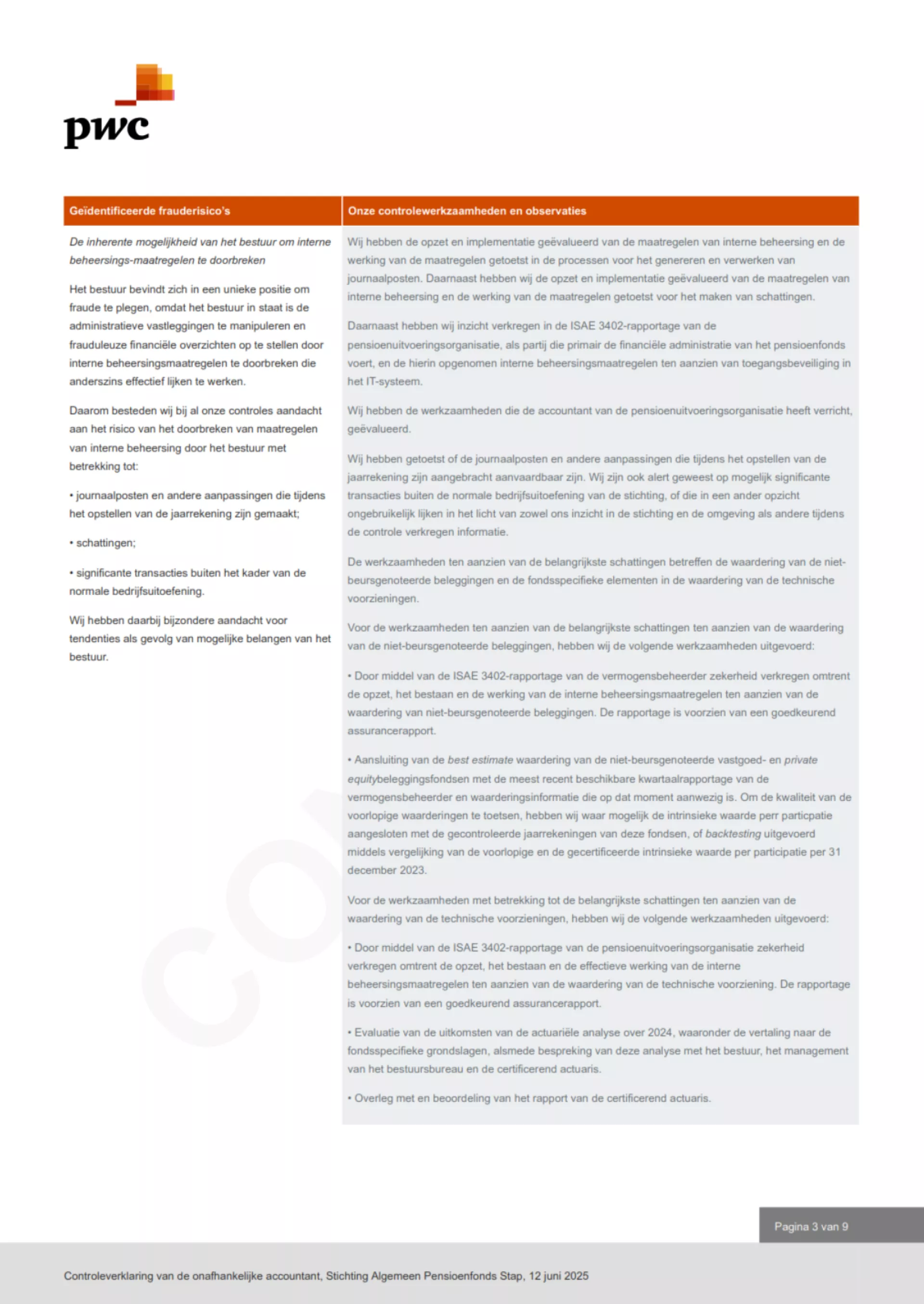 Door Stichting Algemeen Pensioenfonds Stap - Pensioenkring Aon Groep Nederland te Den Haag is aan Triple A – Risk Finance Certification B.V. de opdracht verleend tot het afgeven van een actuariële verklaring als bedoeld in de Pensioenwet over het boekjaar 2023.