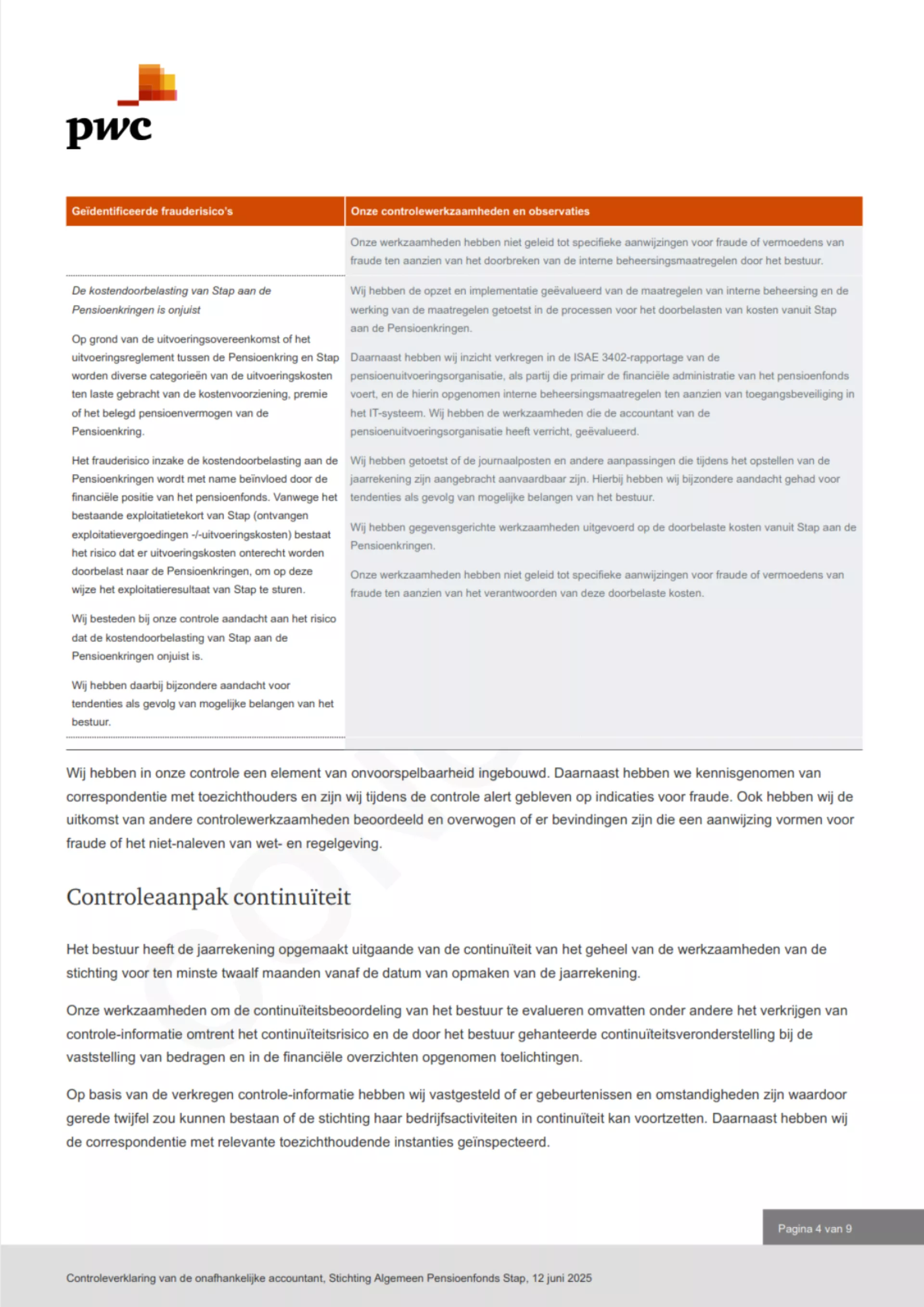 De beschreven werkzaamheden en de uitvoering daarvan zijn in overeenstemming met de binnen het Koninklijk Actuarieel Genootschap geldende normen en gebruiken en vormen naar mijn mening een deugdelijke grondslag voor mijn oordeel.